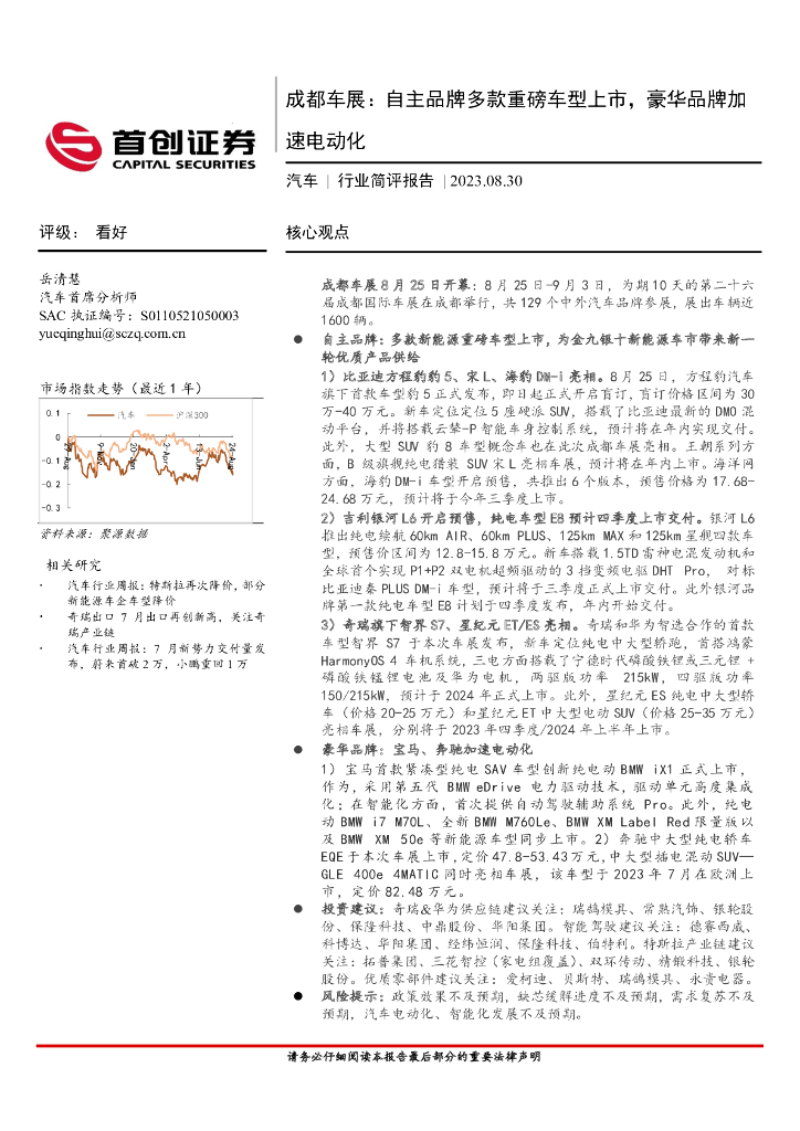 首创证券:汽车:成都车展:自主品牌多款重磅车型上市,豪华品牌加速电动化.pdf