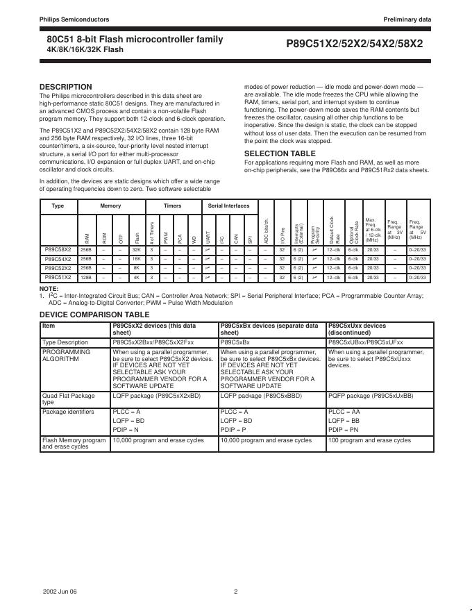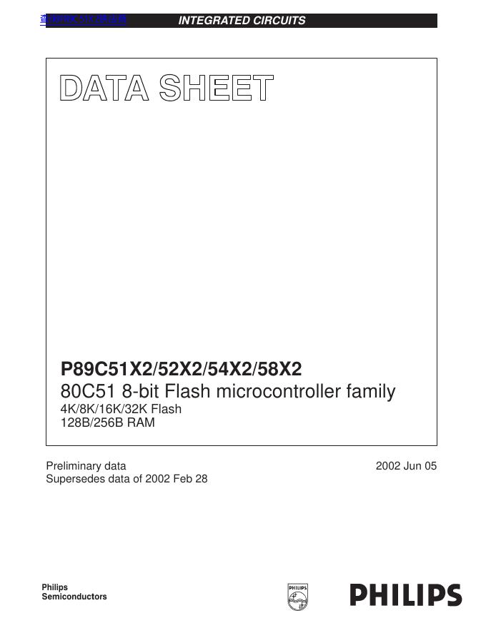 PHILIPS P89C51X2/52X2/54X2/58X2 80C51 8-bit Flash microcontroller family 4K/8K/16K/32K Flash 128B/256B RAM 数据手册.pdf