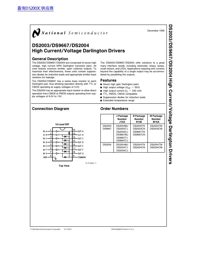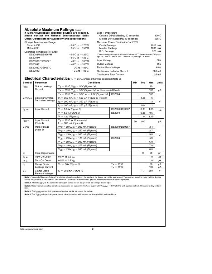 National Semiconductor DS2003/DS9667/DS2004 High Current/Voltage Darlington Drivers 数据手册(1).pdf