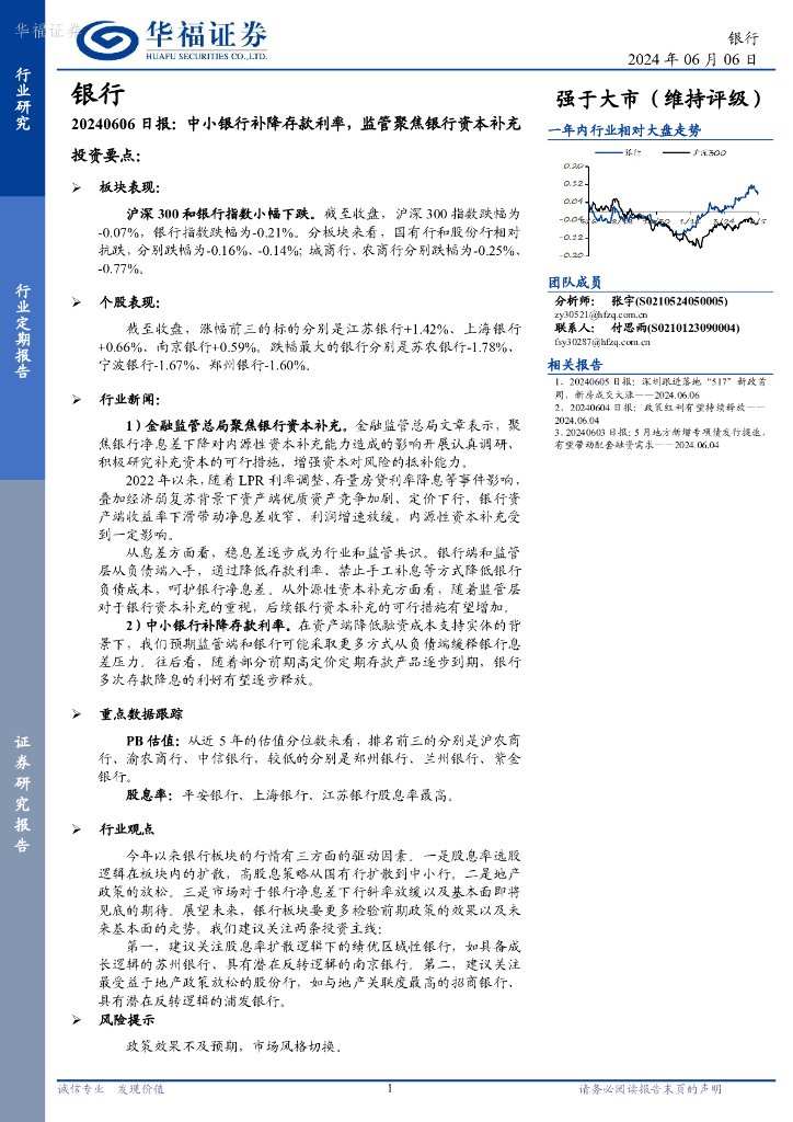 华福证券:银行日报:中小银行补降存款利率,监管聚焦银行资本补充.pdf
