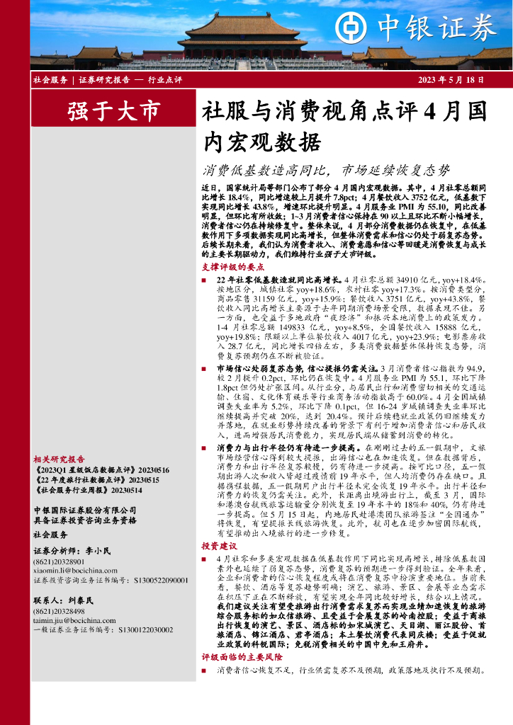 中银证券:社服与消费视角点评4月国内宏观数据:消费低基数造高同比,市场延续恢复态势.pdf