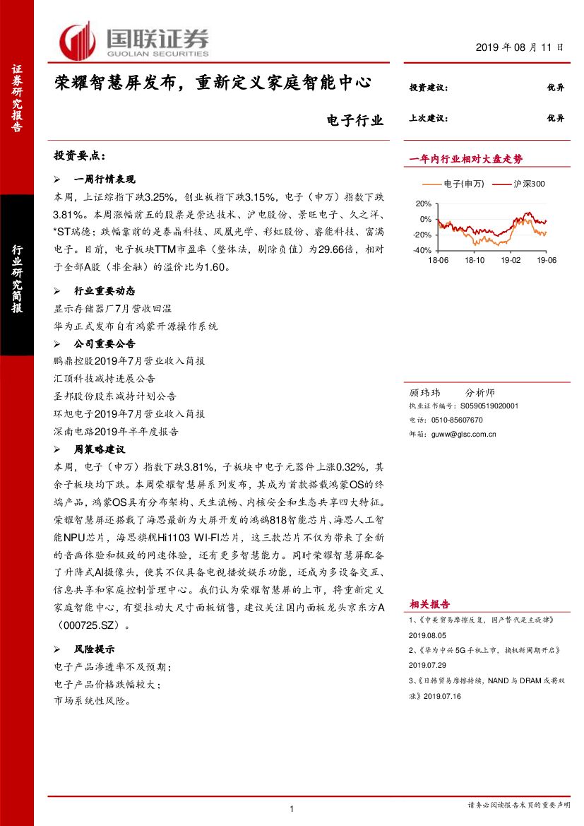 国联证券:电子行业:荣耀智慧屏发布,重新定义家庭智能中心.pdf