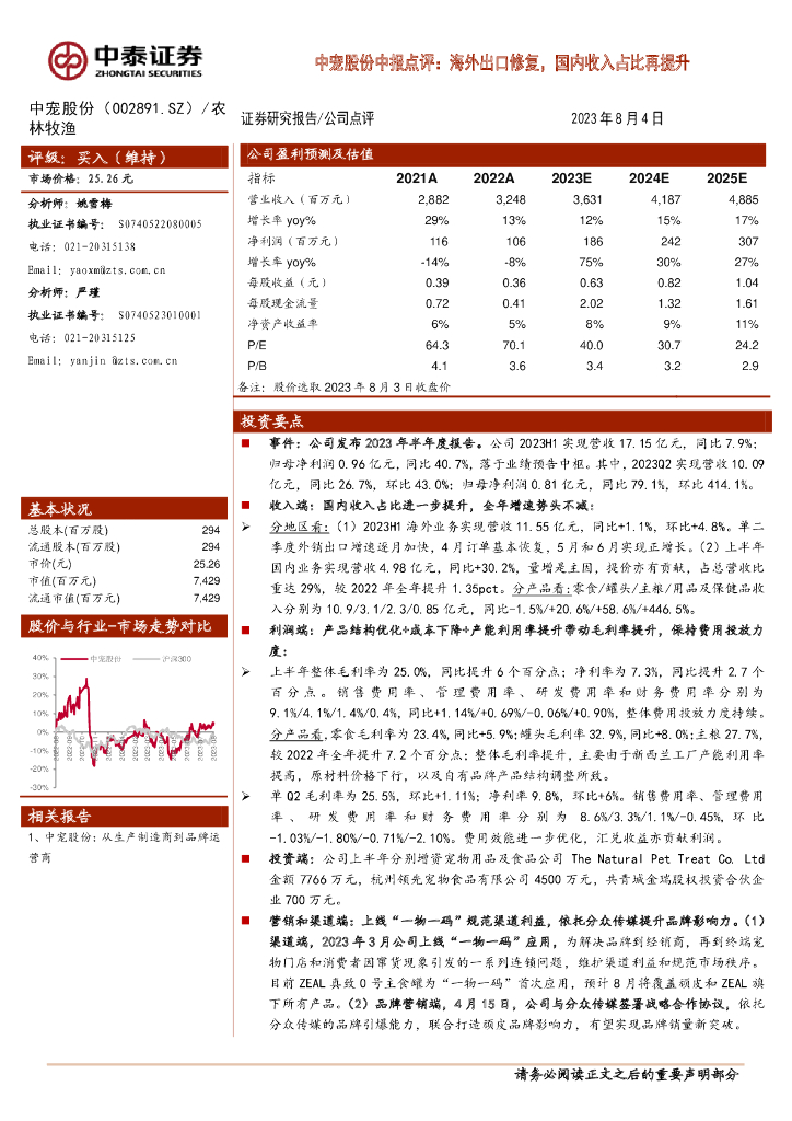 中泰证券:中宠股份中报点评:海外出口修复,国内收入占比再提升.pdf