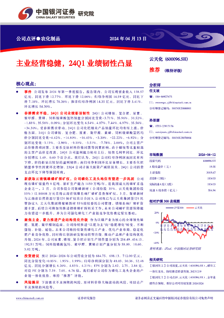 中国银河:云天化(600096)-主业经营稳健,24Q1业绩韧性凸显.pdf