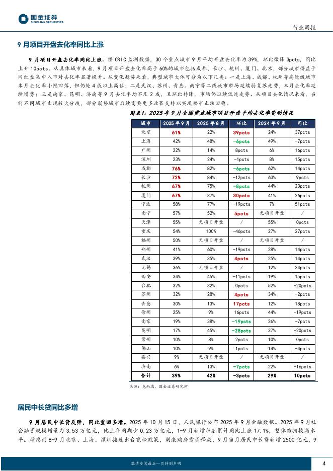 国金证券:房地产行业研究:9月项目开盘去化率同比上涨,居民中长贷同比多增.pdf