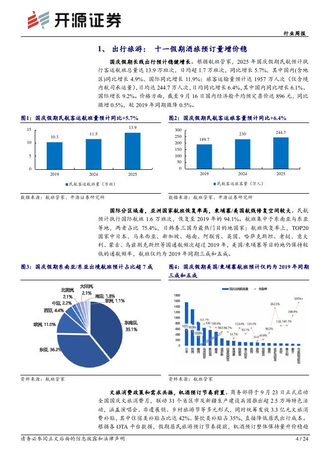 国信证券:社会服务行业财报总结系列之出行链暨9月投资策略:板块结构性景气,双节叠加政策红利提振预期