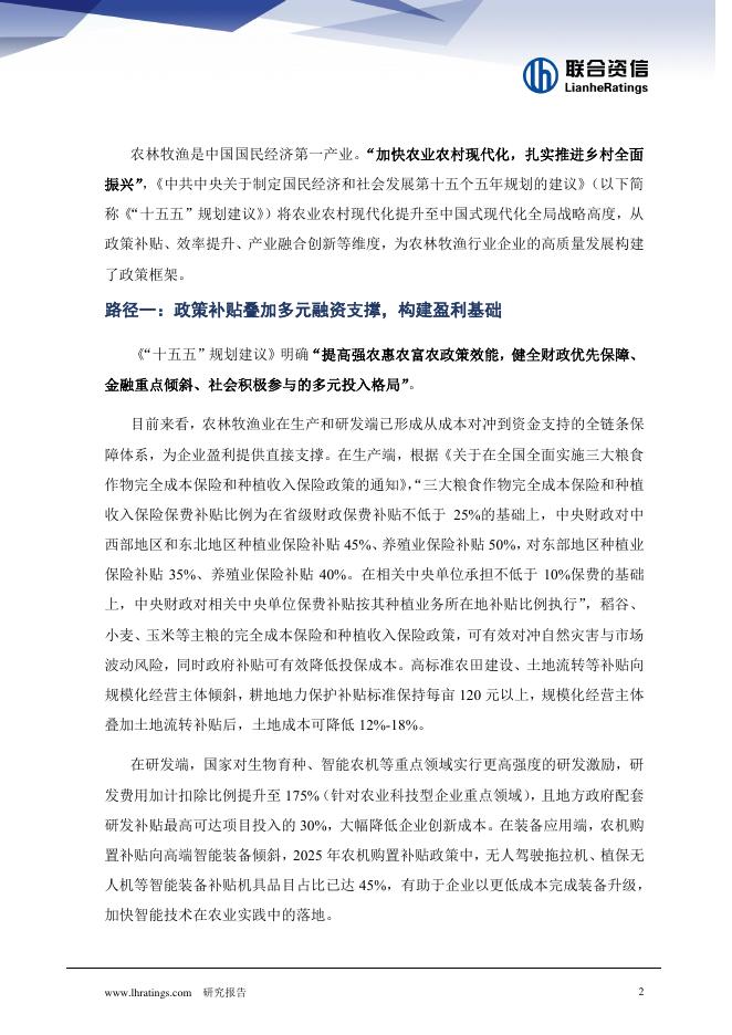 联合资信:政策红利下农林牧渔企业的三大增长路径-《“十五五”规划建议》解读.pdf