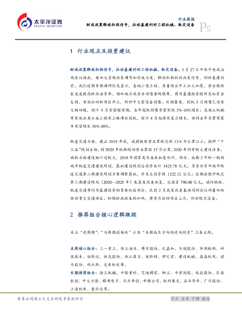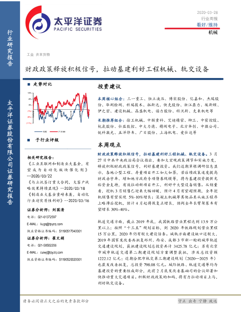 太平洋证券:机械行业周报:财政政策释放积极信号,拉动基建利好工程机械、轨交设备.pdf