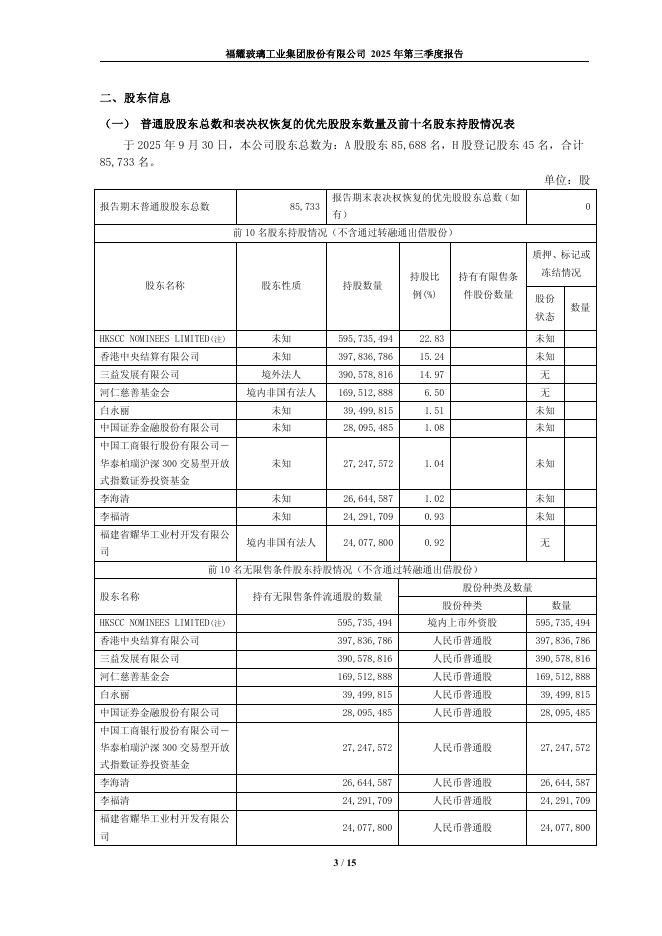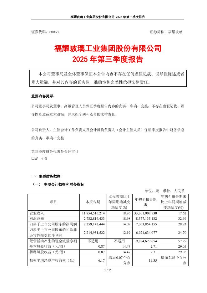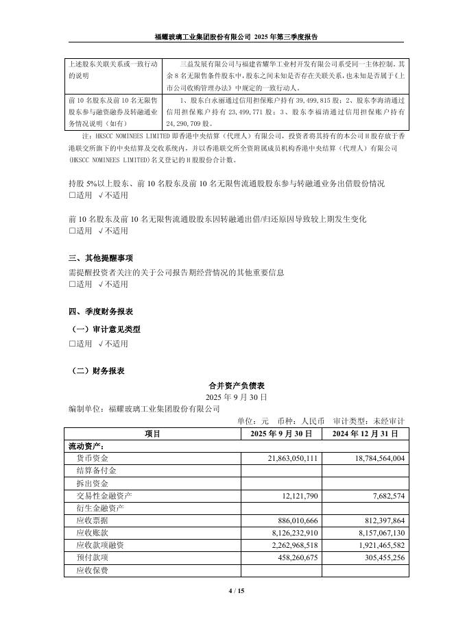 600660-福耀玻璃:福耀玻璃2025年第三季度报告.pdf