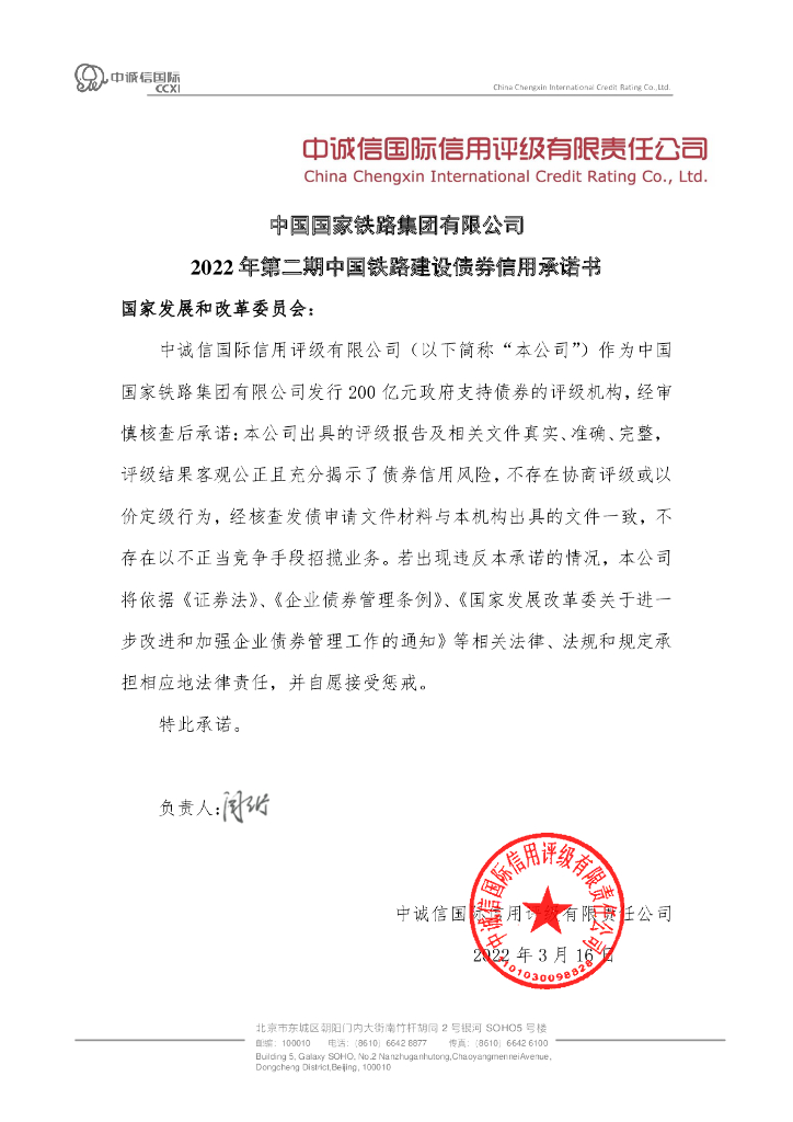 中诚信:2022年第二期中国铁路建设债券信用评级报告信用承诺书.pdf