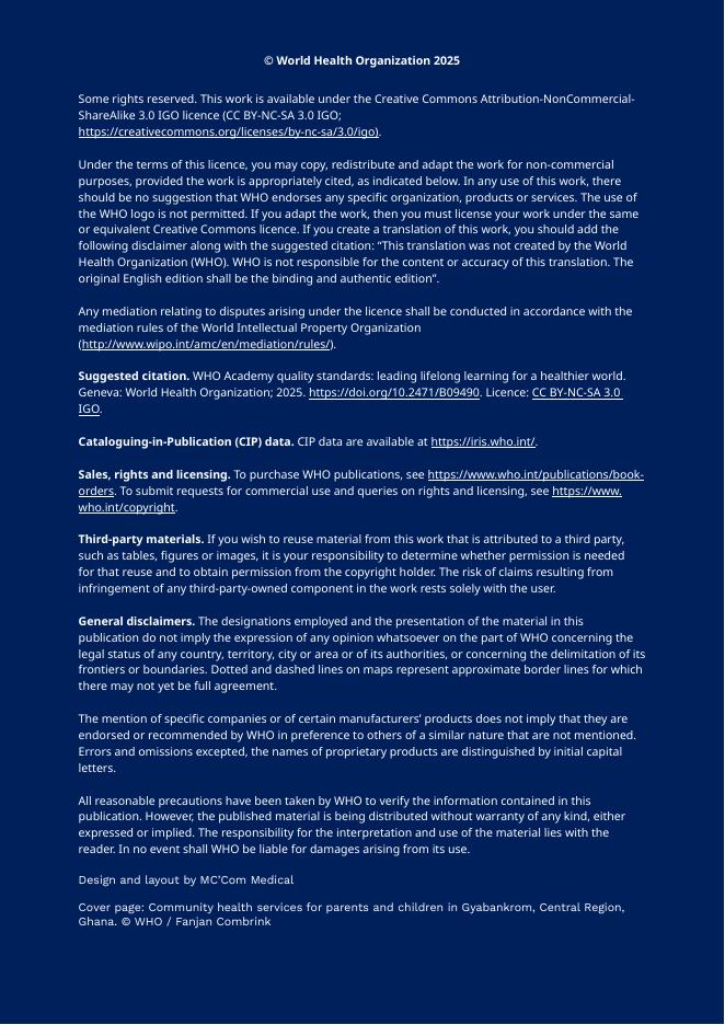 WHO世界卫生组织:2025年世界卫生组织学院质量标准:引领更健康世界的终身学习报告(英文版).pdf