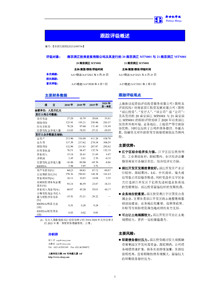 新世纪:南京滨江投资发展有限公司主体评级报告.pdf