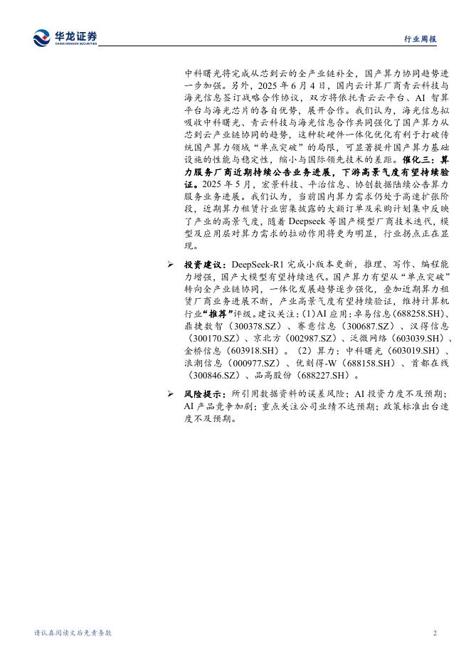华龙证券:计算机行业周报:AI产业高景气度持续验证,看好应用与算力投资机会.pdf