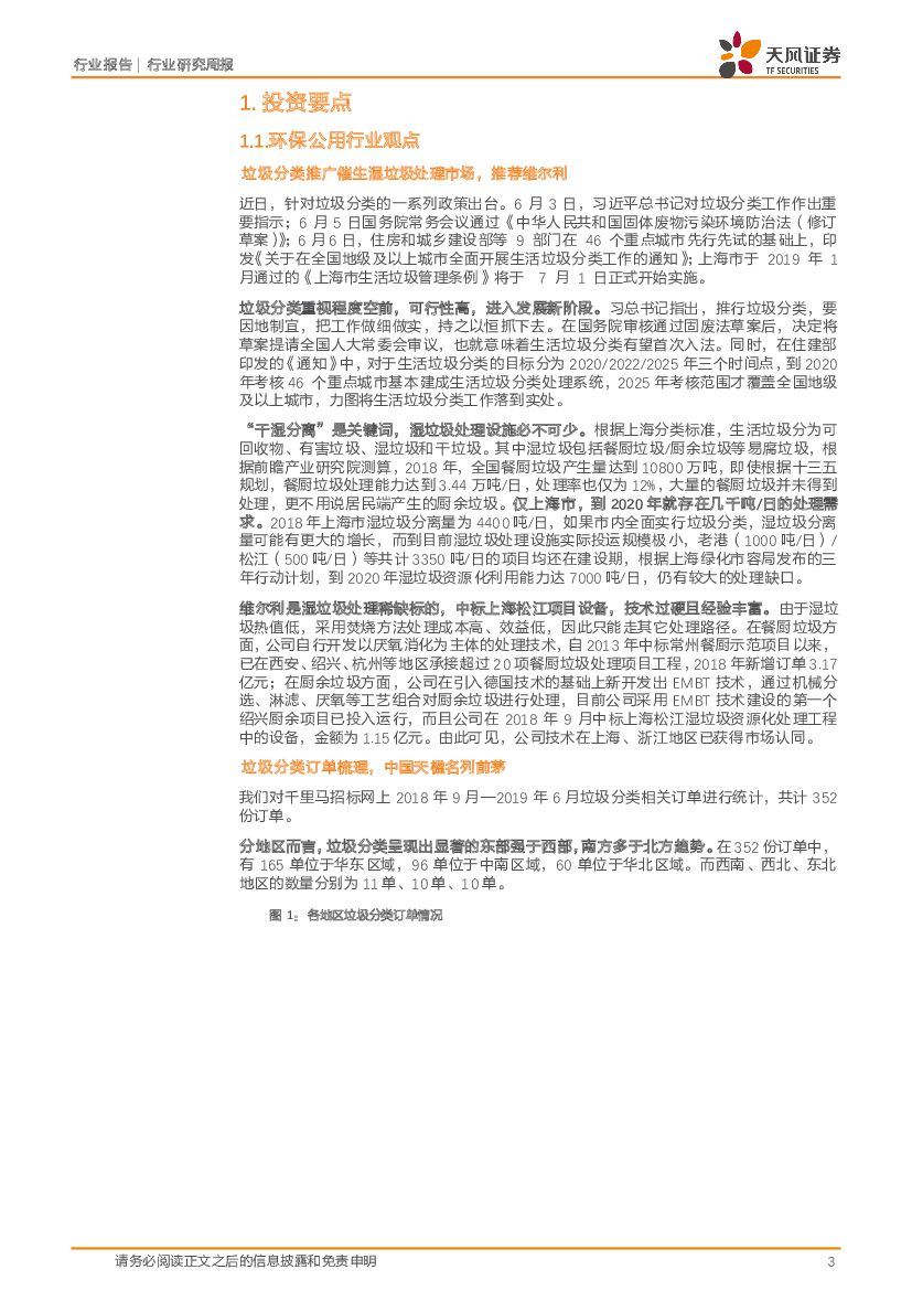 天风证券:公用事业行业研究周报:垃圾分类推广催生湿垃圾处理市场,推荐维尔利;垃圾分类订单梳理,中国天楹名列前茅.pdf