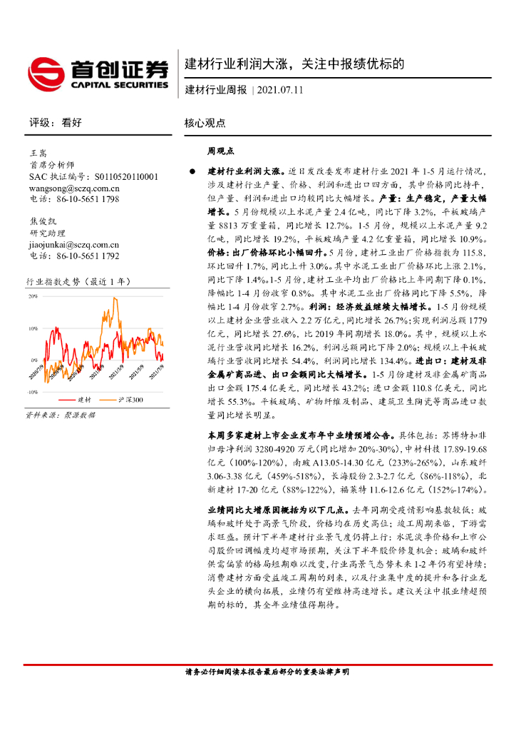 首创证券:建材行业周报:建材行业利润大涨,关注中报绩优标的.pdf