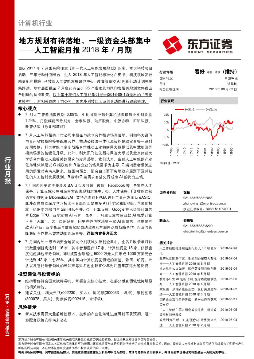 东方证券:人工智能月报2018年7月期:地方规划有待落地,一级资金头部集中.pdf