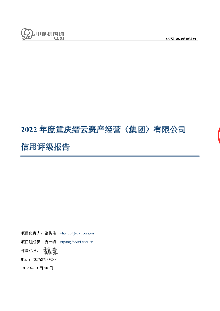 中诚信:2022年度重庆缙云资产经营(集团)有限公司信用评级报告.pdf