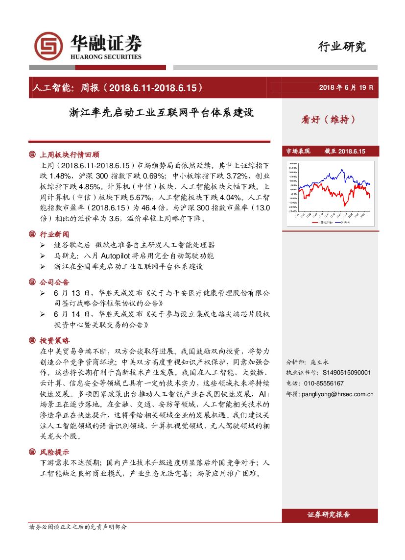 华融证券:人工智能:周报:浙江率先启动工业互联网平台体系建设.pdf