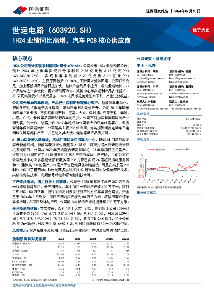 国信证券:世运电路(603920)-1H24业绩同比高增,汽车PCB核心供应商.pdf