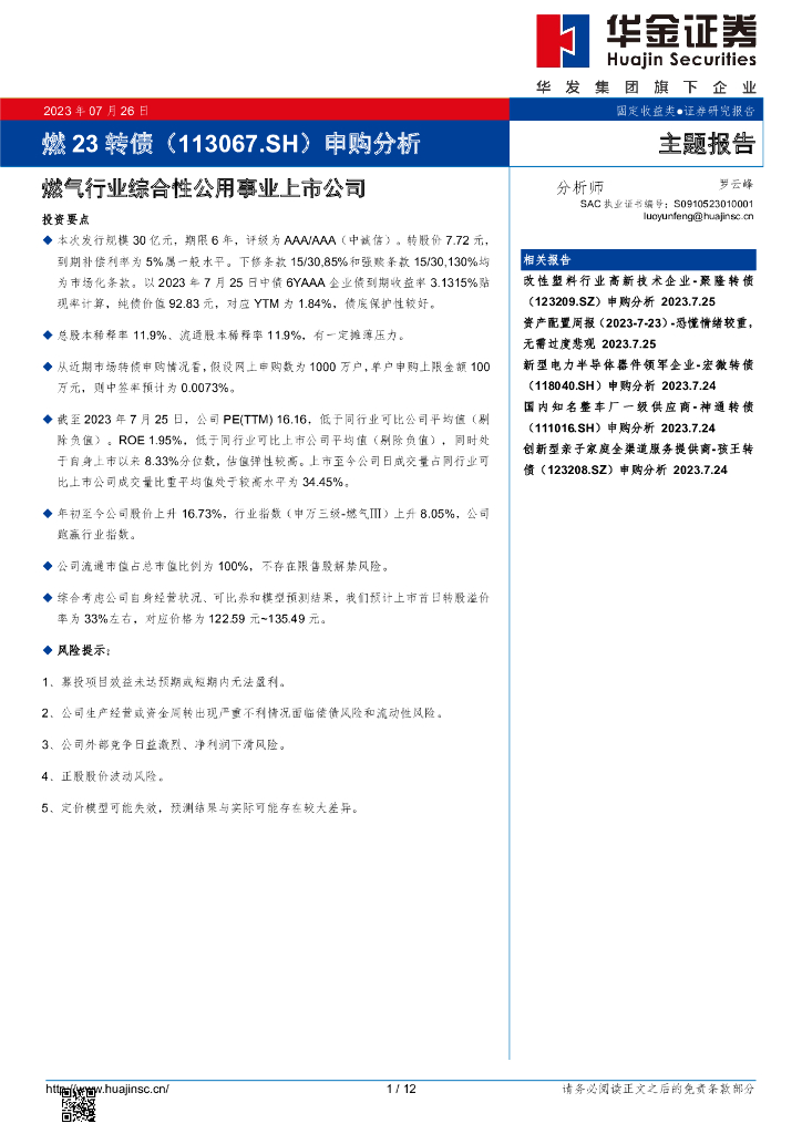 华金证券:深圳燃气(601139)-申购分析:燃气行业综合性公用事业上市公司.pdf