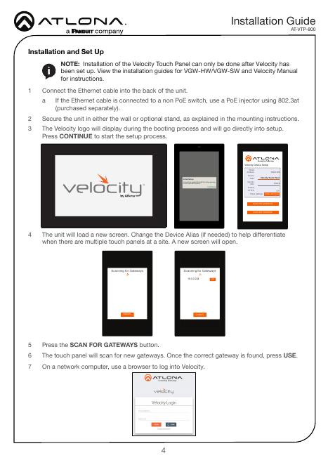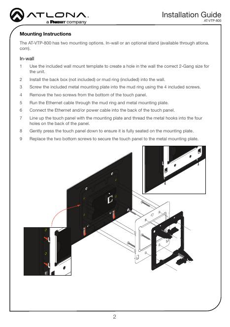 Atlona VTP-800 8英寸触摸屏安装指南.pdf