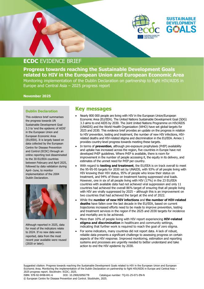 欧洲疾控中心:2025年在欧盟和欧洲经济区实现与艾滋病相关的可持续发展目标的进展报告(英文版).pdf
