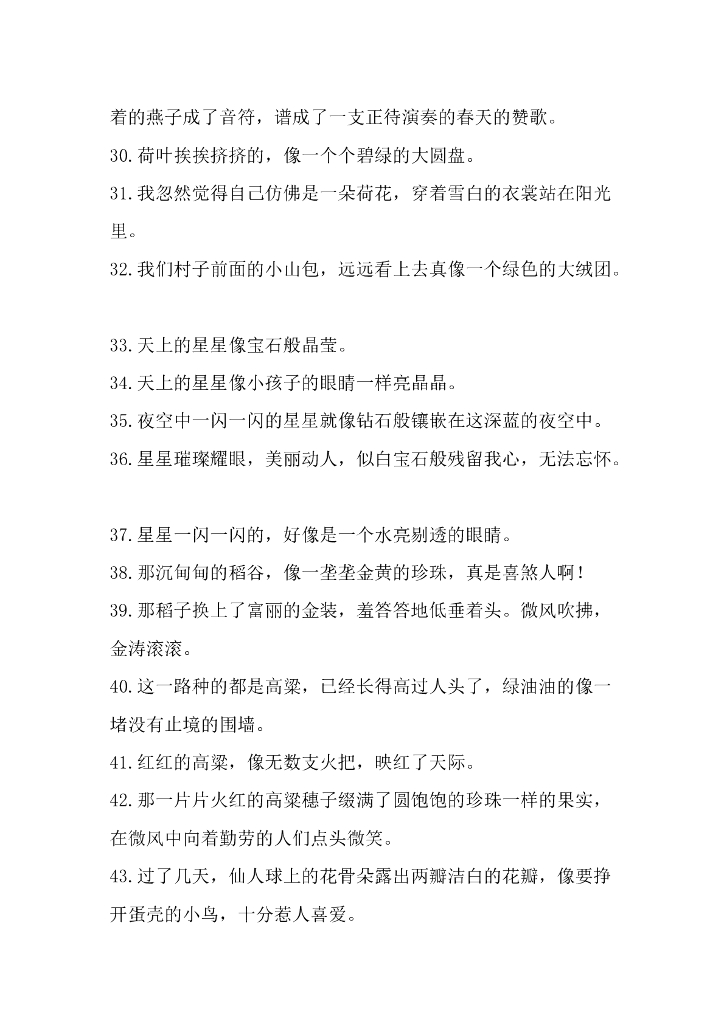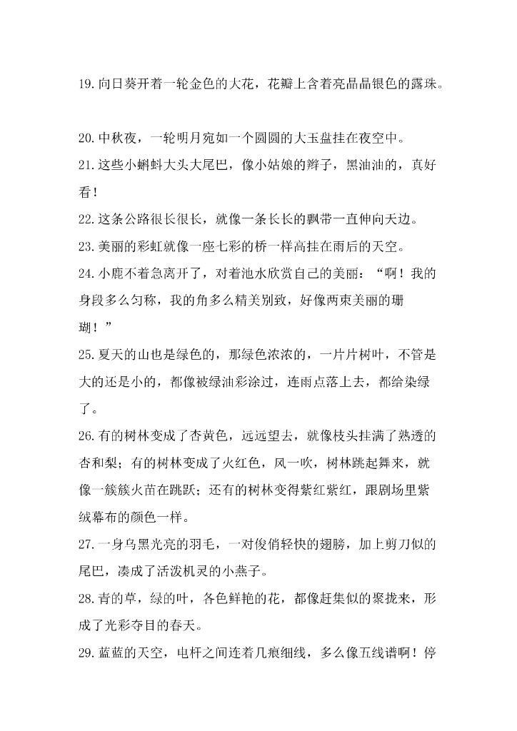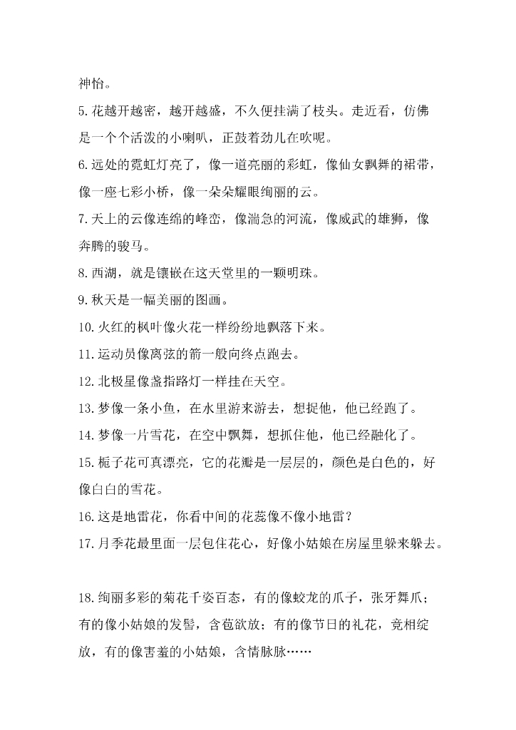 小学生作文常用拟人、比喻、排比、夸张句汇总.doc