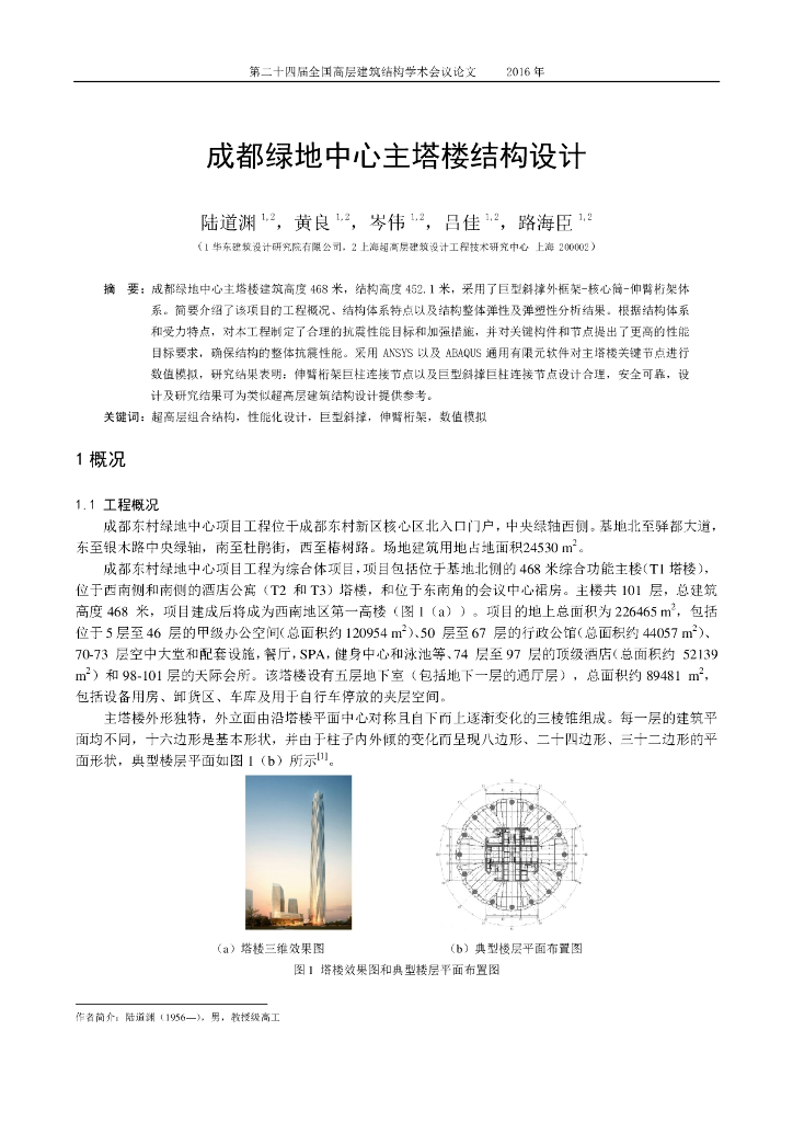 成都绿地中心巨型斜撑外框架-核心筒-伸臂桁架结构设计论文.pdf