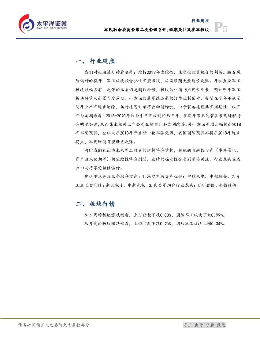 太平洋证券:国防军工行业周报:军民融合委员会第二次会议召开,短期关注民参军板块.pdf