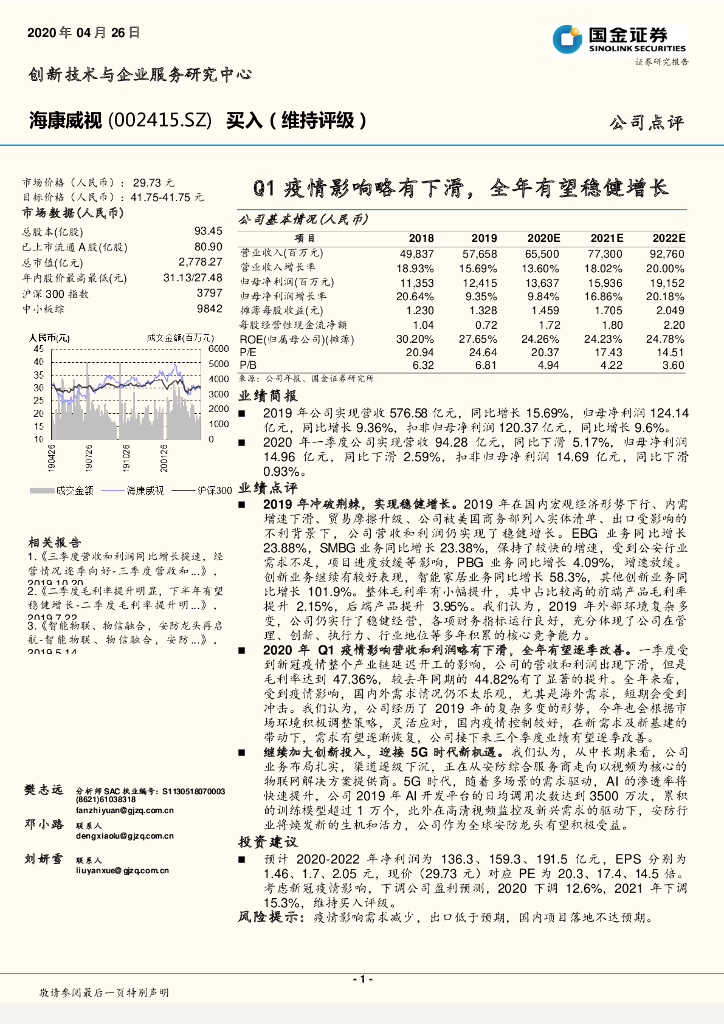 国金证券:海康威视(002415)-Q1疫情影响略有下滑,全年有望稳健增长.pdf