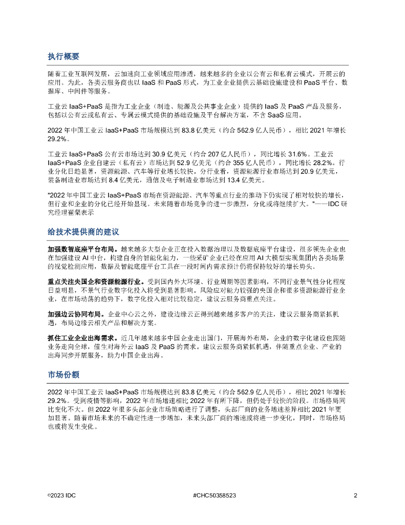 IDC:中国工业云IaaS+PaaS市场份额,2022分化初现报告.pdf