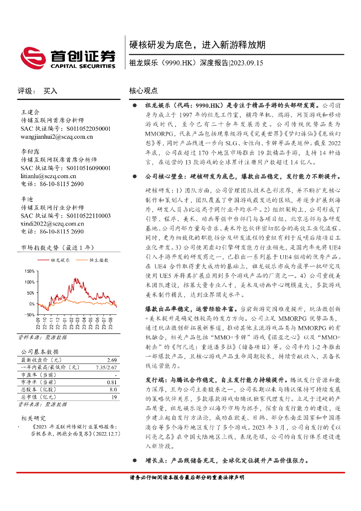 首创证券:祖龙娱乐(09990)港股公司研究报告-深度报告:硬核研发为底色,进入新游释放期.pdf