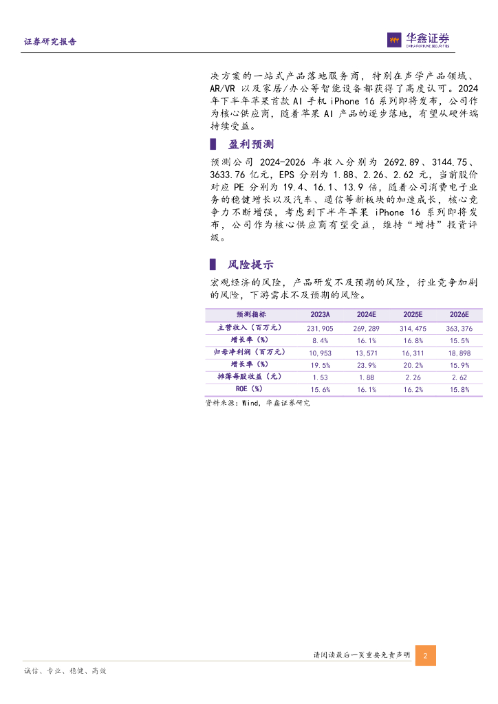 华鑫证券:立讯精密(002475)-公司事件点评报告:消费电子AI新需求促业务稳健增长,汽车、通信新板块增速显著.pdf