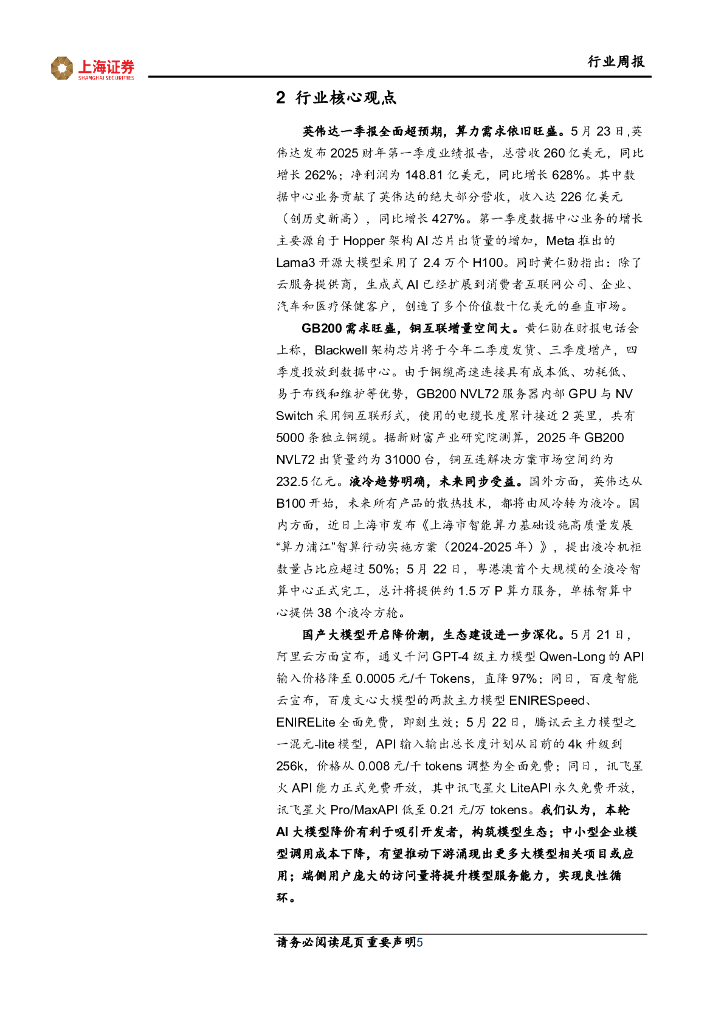 上海证券:通信行业周报:英伟达超预期业绩彰显算力高景气,大模型降价潮深化生态建设.pdf