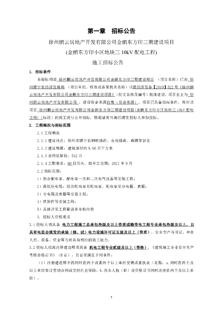 金鹏东方印小区地块三10kV配电工程招标文件.pdf