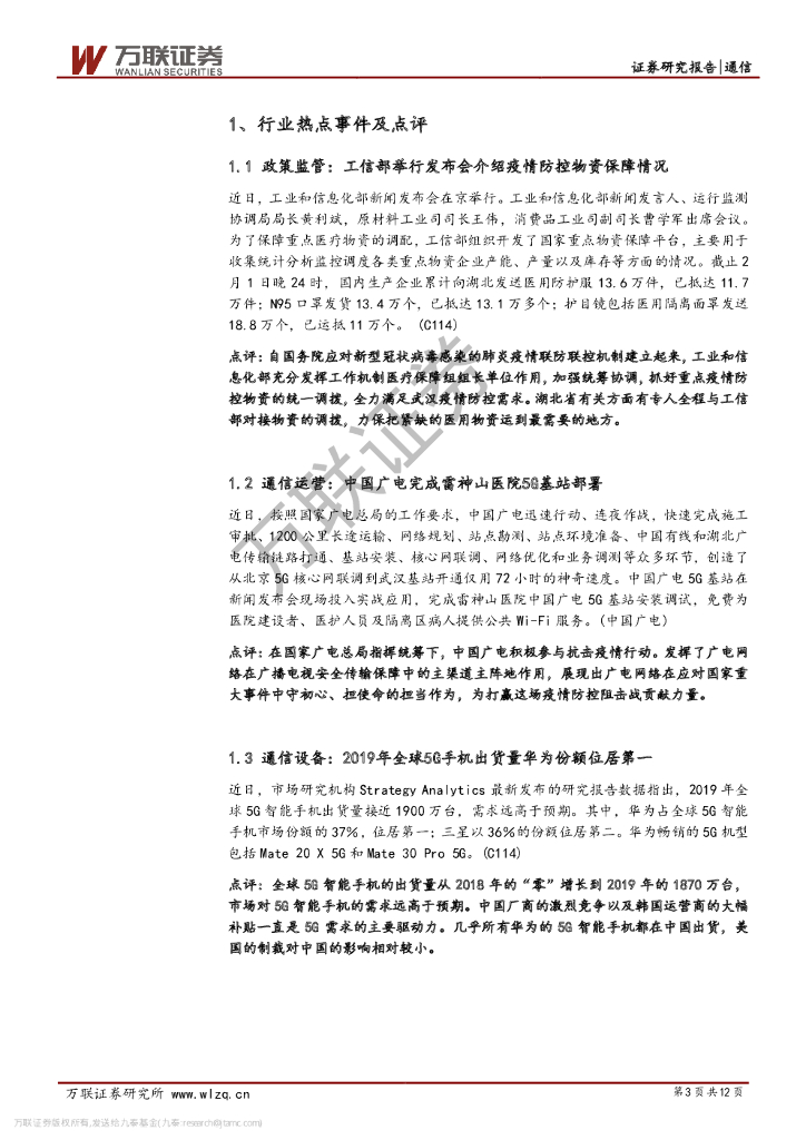 万联证券:通信行业周观点:共抗疫情,广电完成雷神山医院5G基站部署.pdf