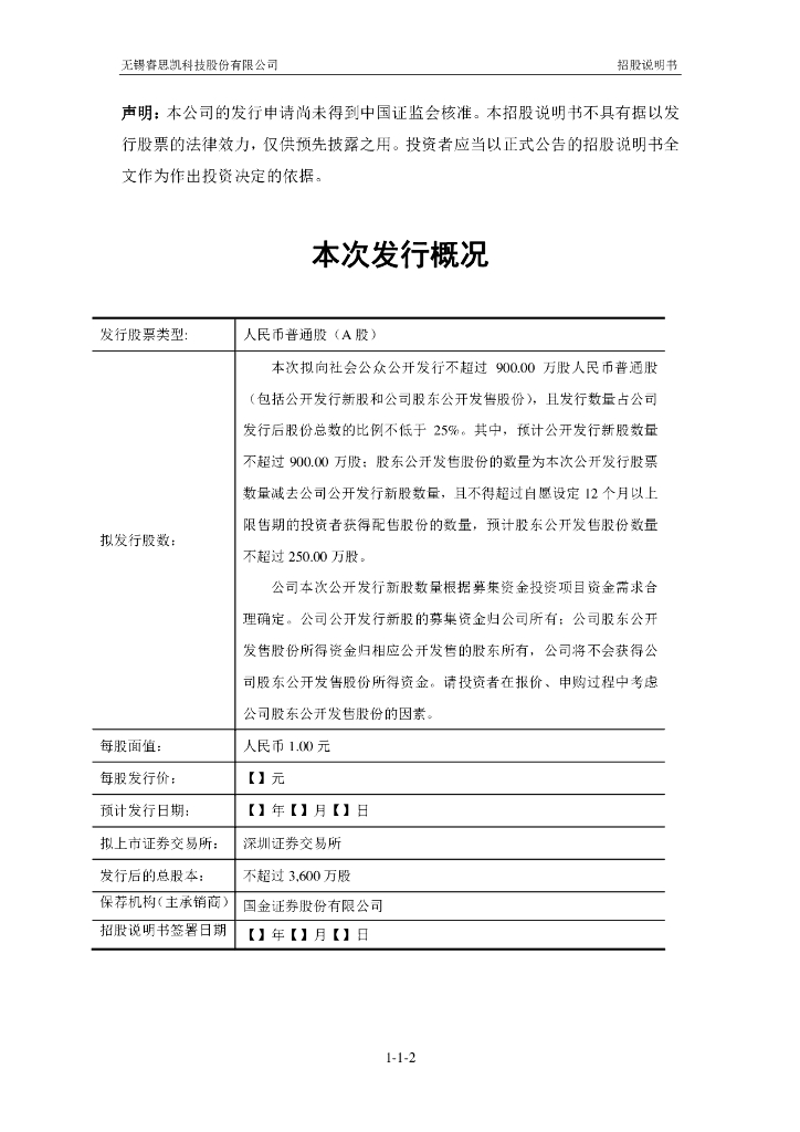 无锡睿思凯科技股份有限公司深交所创业板IPO上市招股说明书.pdf