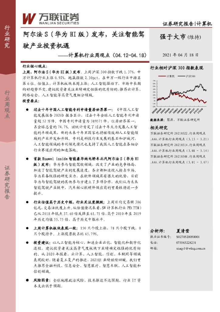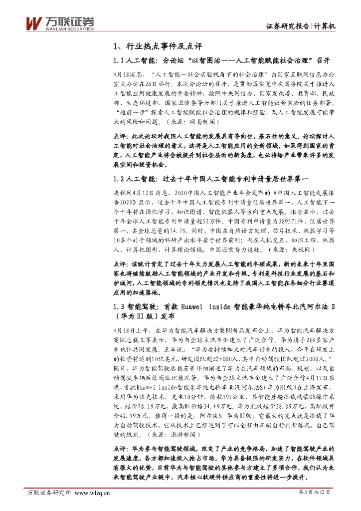 万联证券:计算机行业周观点:阿尔法S(华为HI版)发布,关注智能驾驶产业投资机遇.pdf
