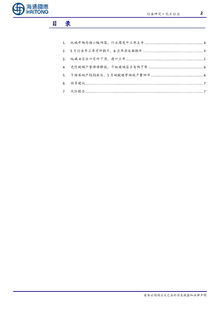 海通国际:化工行业周报:纯碱价格小幅回落,6月以来库存呈上涨趋势,光伏玻璃产量保持快速增长.pdf