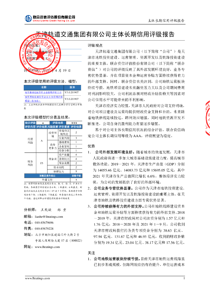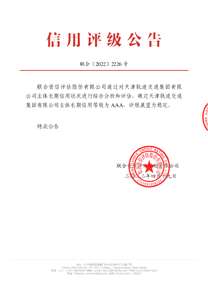 联合资信:天津轨道交通集团有限公司主体评级报告及跟踪评级安排.pdf