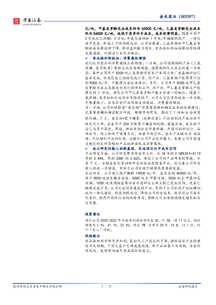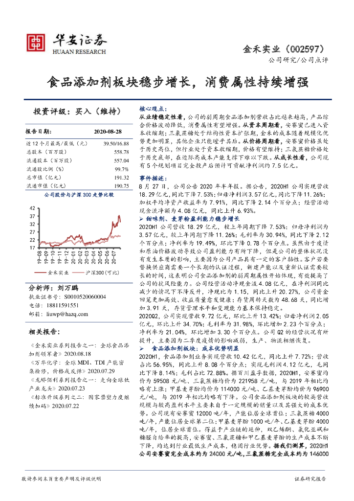 华安证券:金禾实业(002597)-食品添加剂板块稳步增长,消费属性持续增强.pdf