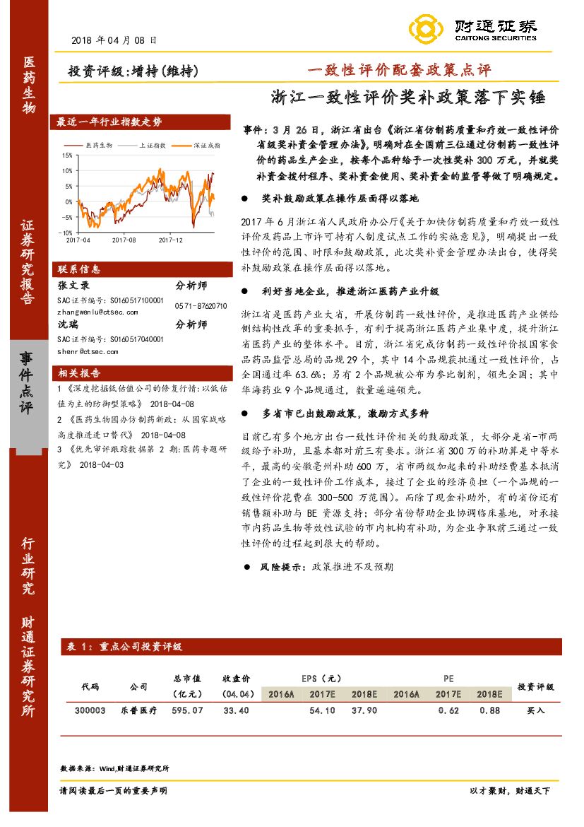 财通证券:医药生物事件点评:一致性评价配套政策点评-浙江一致性评价奖补政策落下实锤.pdf