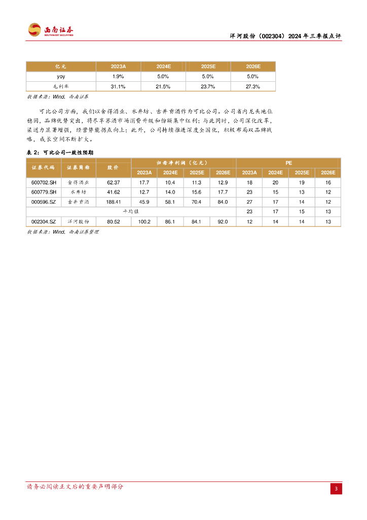 西南证券:洋河股份(002304)-2024年三季报点评:经营短期承压,蓄力未来发展.pdf