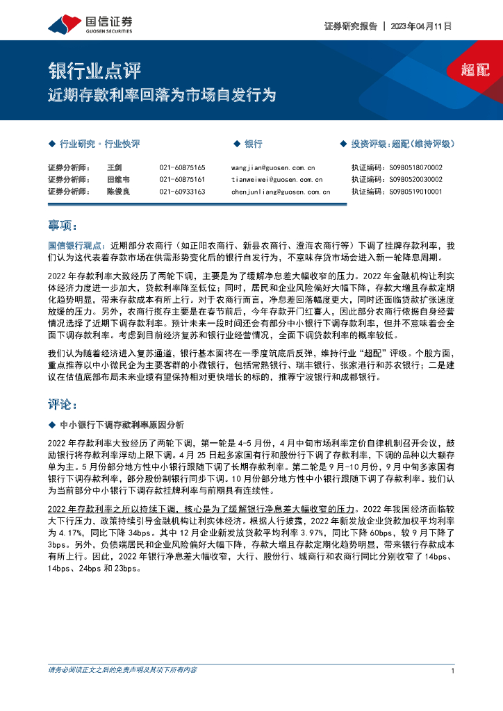 国信证券:银行业点评:近期存款利率回落为市场自发行为.pdf