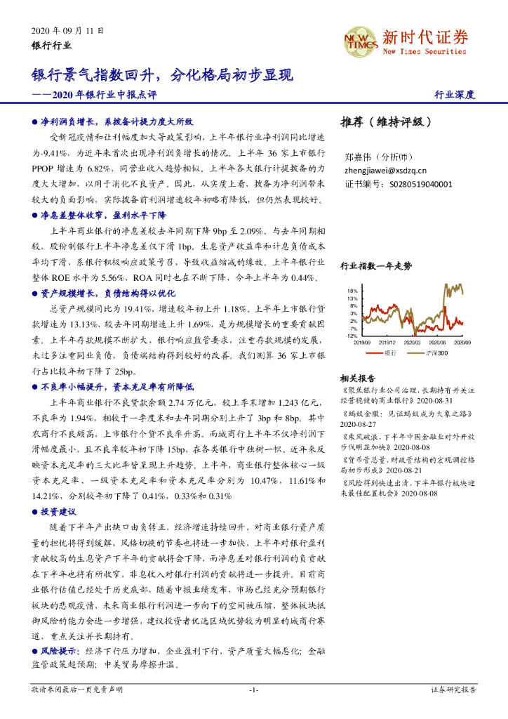 新时代证券:2020年银行业中报点评:银行景气指数回升,分化格局初步显现.pdf