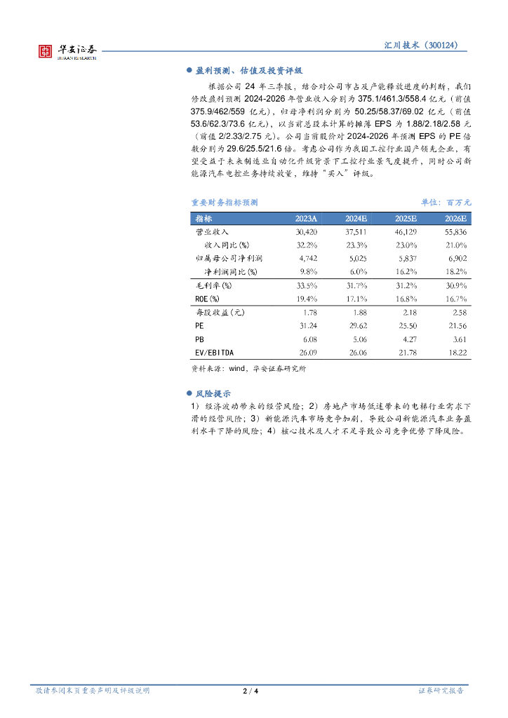 华安证券:汇川技术(300124)-24三季报点评:静待工控拐点,新能源汽车业务维持高增.pdf