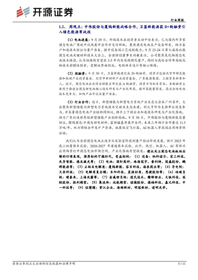 开源证券:电力设备行业周报:固态电池行业周报(第十七期):中伟股份与厦钨新能战略合作,卫蓝新能源获D+轮融资引入绿色能源.pdf