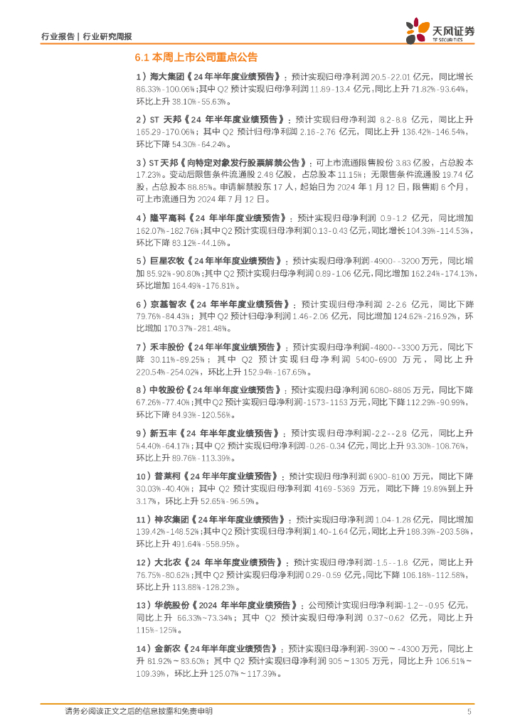 天风证券:农林牧渔行业2024年第27周周报:农业24H1业绩预告有何看点?.pdf