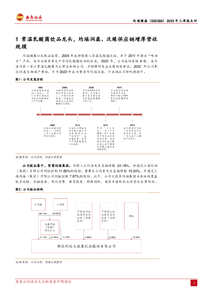 西南证券:均瑶健康(605388)-2023年三季报点评:成功整合润盈,发力益生菌第二曲线可期.pdf