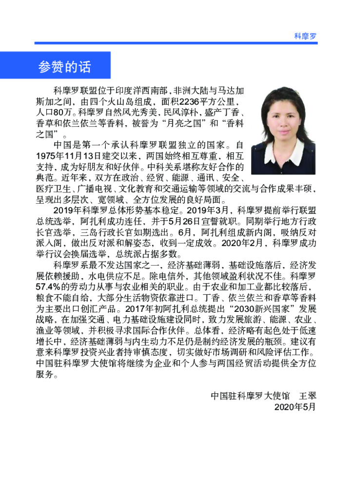 商务部:对外投资合作国别(地区)指南:科摩罗(2020年版).pdf